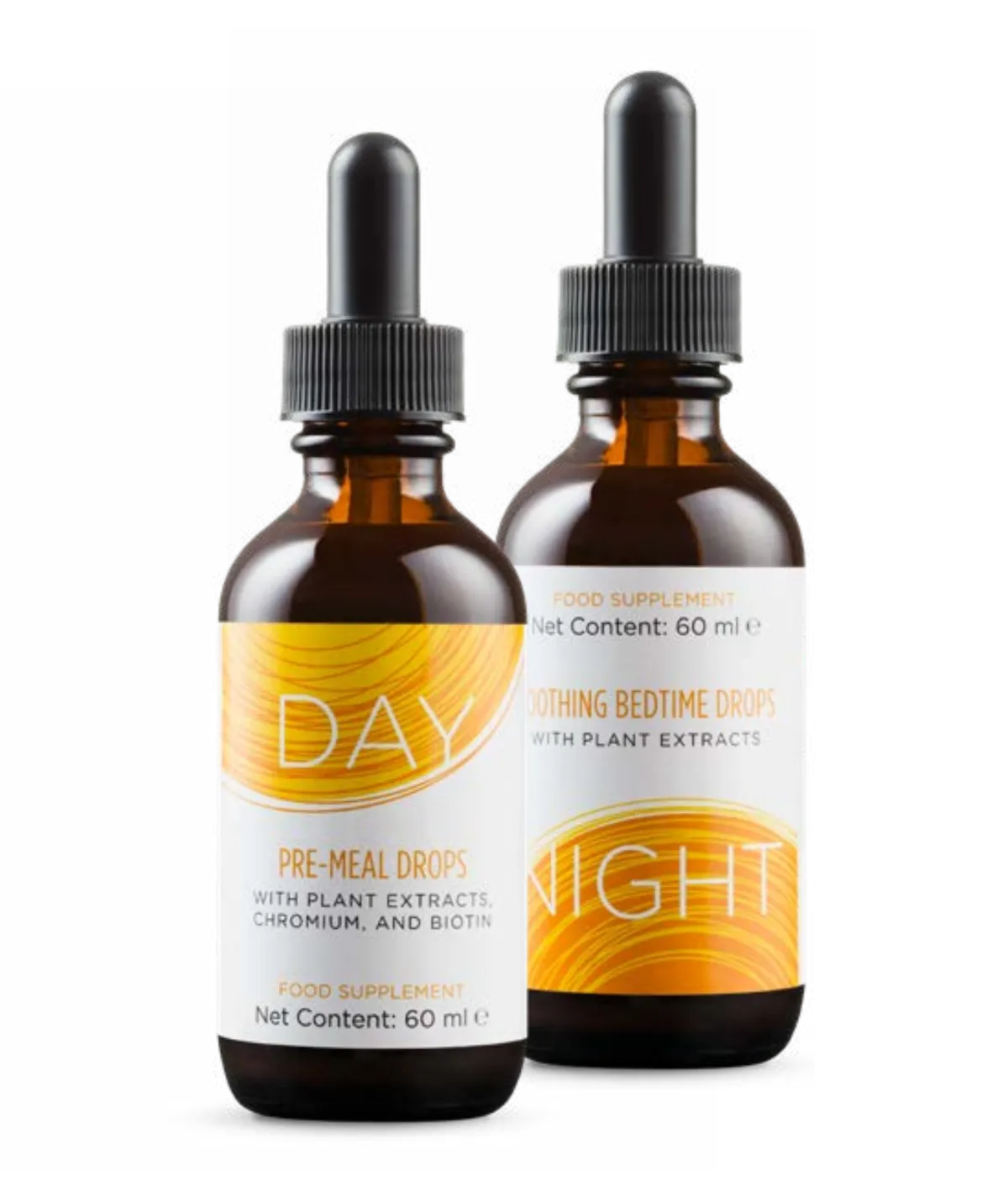Day drops: Glycerol (humectant), Water, White Kidney Bean Extract (Phaseolus vulgaris L.), Cacao Bean Extract (Theobroma cacao L.), Erythritol (sweetener), Natural Vanilla Flavour, Green Coffee Bean Extract (Coffea arabica L.), Citric Acid (acidy regulator), Green Tea Leaf Extract (Camellia sinensis), Guarana Seed Extract (Paullinia cupana Kunth), Cinnamon Bark Extract (Cinnamomum cassia), Steviol Glycosides (sweetener), D-biotin, Chromium Chloride.